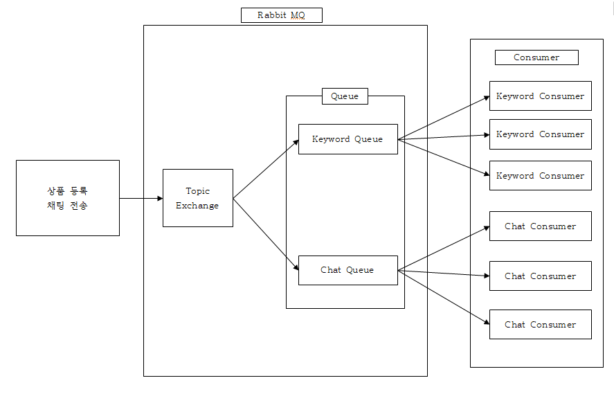 2. Topic Exchange를 통해 키워드 알림이라면 Keyword Queue, 채팅이라면 Chat Queue로 메시지 전달