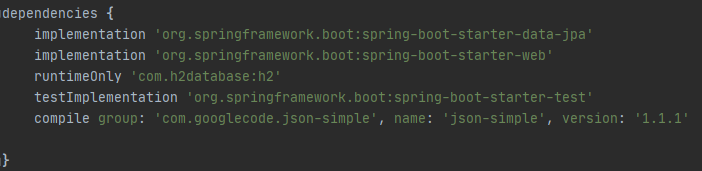 dependencies에 마지막줄인 complie ~~을 작성하고 그레이들을 reload합니다.